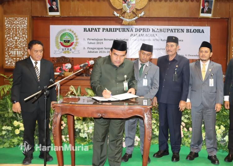 Persetujuan tersebut ditandai dengan penandatanganan berita acara oleh pimpinan DPRD dan Bupati Blora Arief Rohman dalam Rapat Paripurna DPRD Blora yang dipimpin Ketua DPRD Blora, Mustopa, Rabu, 31 Desember 2025.