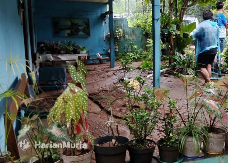 Akibat kejadian tersebut, sejumlah rumah warga tertimbun material tanah dan lumpur tebal yang terbawa arus banjir.
